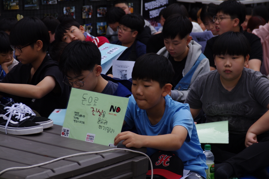 이어 참가자 소개와 자유발언이 이어졌습니다. 일반인 길잡이 님, 단구초등학교 이소연, 김사비나, 안세환, 김용원, 성화초등학교 김규나, 마리몬드 홍리나 대표, 동아시아화해평화네트워크 나카이 준 신부의 자유발언이 있었습니다.