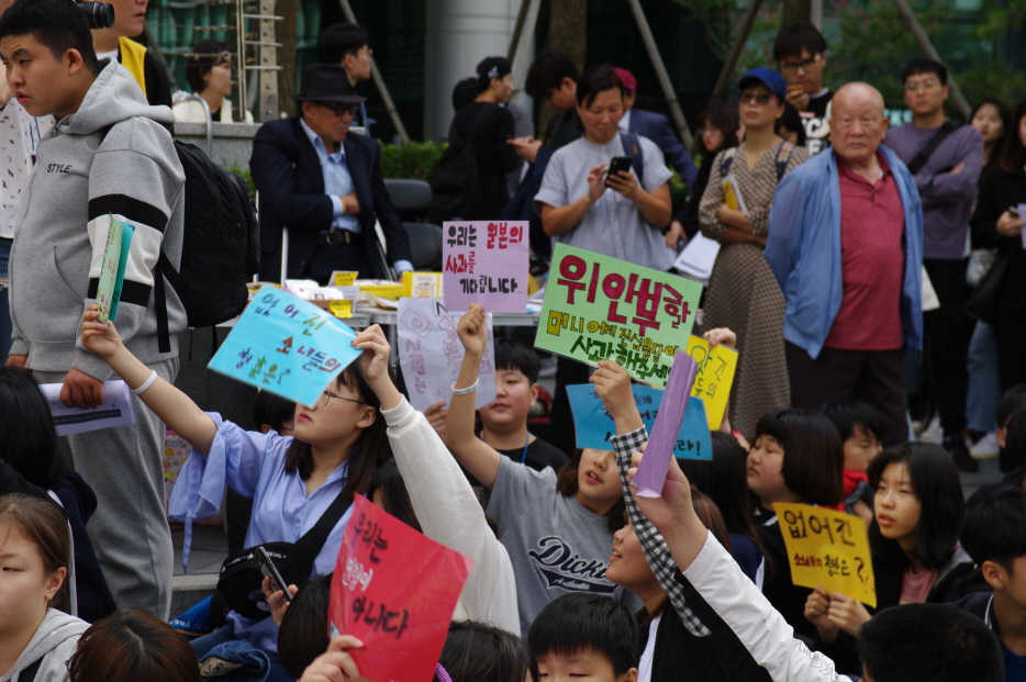 마지막으로 성명서 낭독 후 1406차 일본군성노예제 문제해결을 위한 수요시위는 막을 내렸습니다.