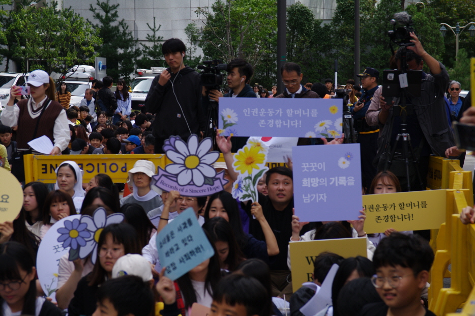 할머니들께서는 단순히 피해자가 아니라 30년 가까이 이 자리에서 수요집회를 이끌어오신 강하고 , 멋진 인권운동가이자, 예술가셨기 때문입니다. 함께할수록 저희가 도와드려야 하는 존재가 아니라, 너무 멋져서 존경할 수 밖에 없었습니다. 상처를 넘어서 미래세대를 위해 지금도 끝까지, 이 자리에서 세계의 자리에서 앞서 싸워주셔서 감사합니다.