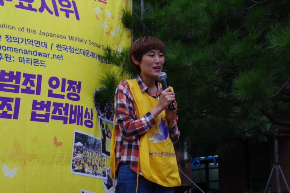 ---- 안녕하세요. 마리몬드 신임 대표 홍리나 입니다. 7년전 저는 수요집회에 처음 오게 되었습니다. 그리고 오늘 제가 이자리에 서게 될 줄은 몰랐습니다.