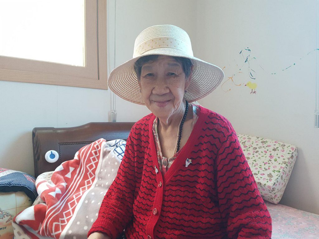 그렇게 안으로 들어가자 박옥선 할머니께서 소파에 앉아 티비를 보고 계십니다. 전보다는 조금 건강이 나아지신 모습입니다. 반가운 마음에 옆에 앉아 인사를 드렸습니다. 천천히 둘러보시며 끄덕끄덕 인사를 받아주십니다.
