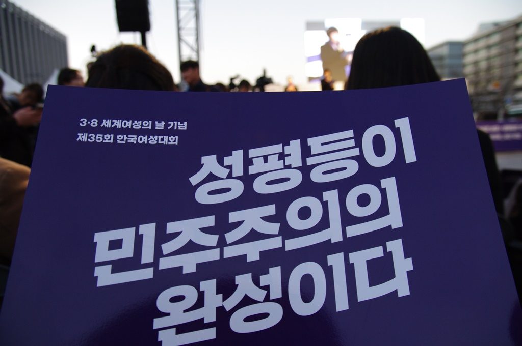 <2019 3.8 세계여성의 날 기념 제35 회 한국여성대회>가 3월 8일(금) 오후 5시 서울 광화문광장에서 개최되었습니다. 이번 대회의 슬로건은 ‘성평등이 민주주의의 완성이다 - #미투, 우리가 세상을 바꾼다’입니다.