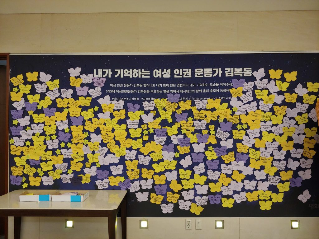 김복동할머니께서는 국내외 활동을 통해 다양한 분들과 연대하고, 손을 잡고, 무력분쟁 성폭력 없는 평화로운 세상을 위한 운동을 이어나가셨습니다. 그런 할머니를 기억하고자 빈소에는 첫 날부터 다양한 분들이 찾아오셨습니다.