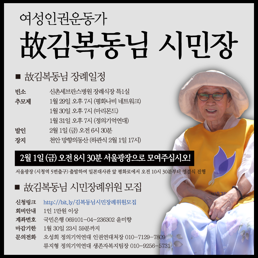 시민장례위원 신청 링크: http://bit.ly/김복동님시민장례위원모집