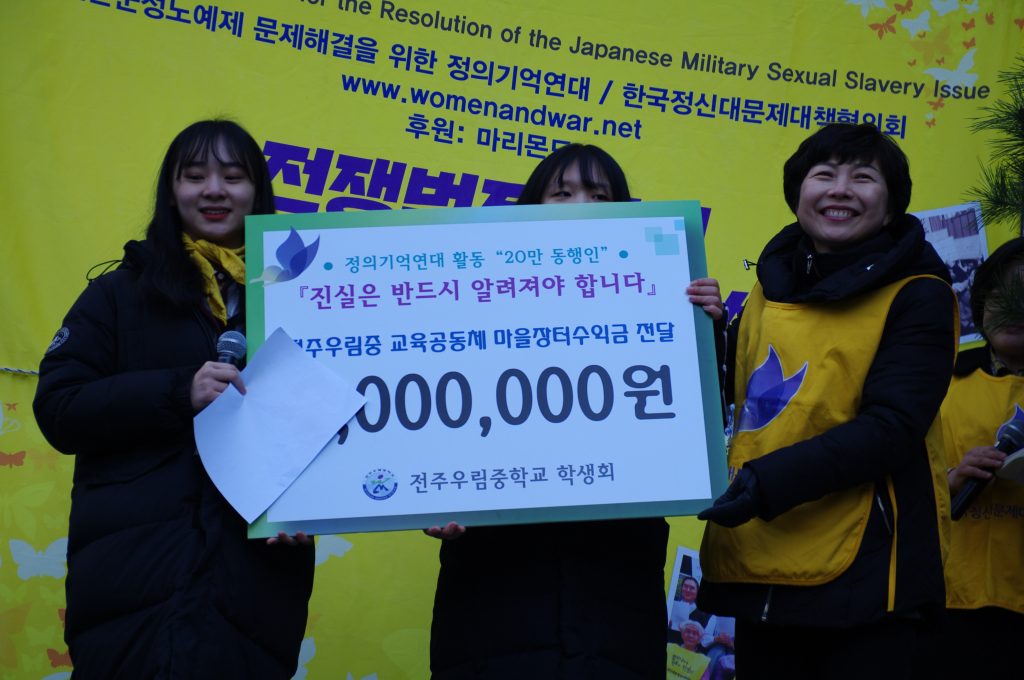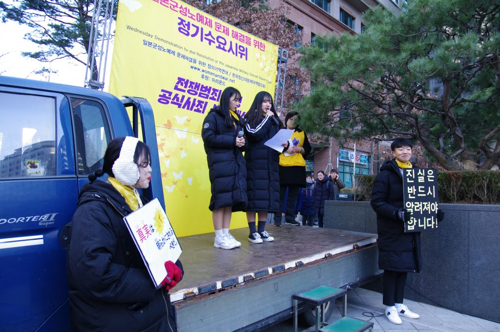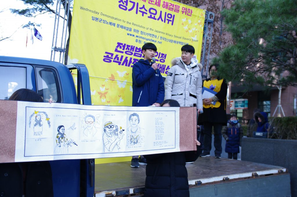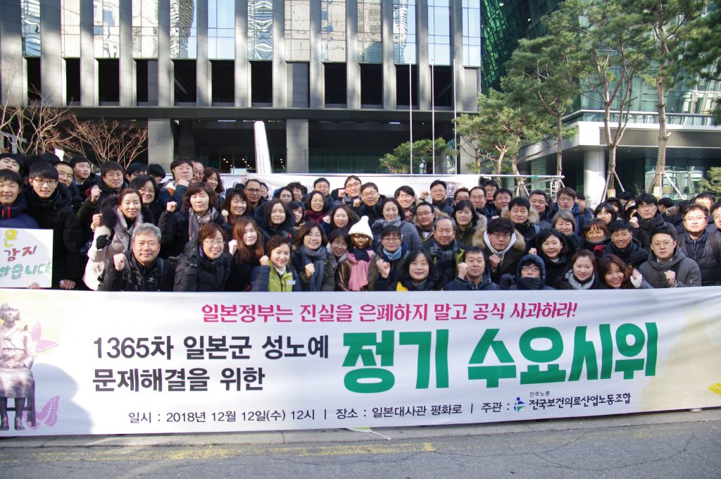 1365차 일본군성노예제 문제해결을 위한 정기 수요시위는 보건의료노조 주관으로 진행되었습니다. 인천 신흥중학교, 전주 우림중학교, 시흥 장곡중학교, 이천 양정여고 동아리 반크, 평화나비네트워크, 마리몬드, 국민대 평화의소녀상 건립추진위원회와 수녀님들, 시민들 400여명이 함께 했습니다.