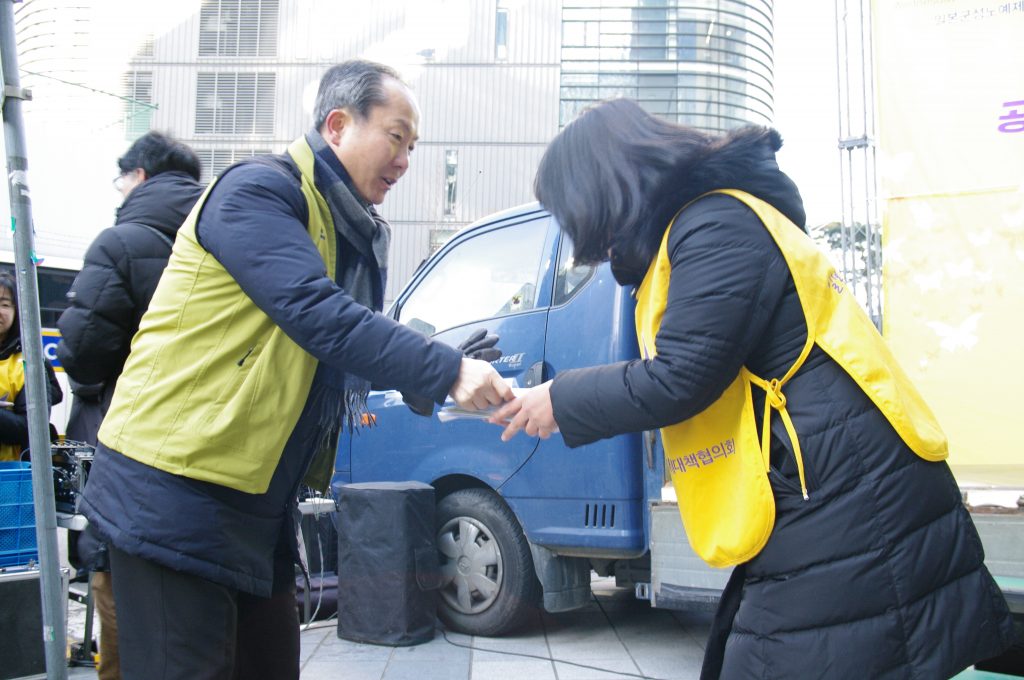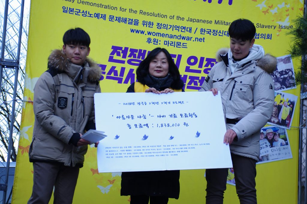 마지막으로 보건의료노조 각 지부에서 릴레이로 평화의 나비기금을 전달해 주셨고, 성명서 낭독 후 1365차 수요시위는 마무리 되었습니다.