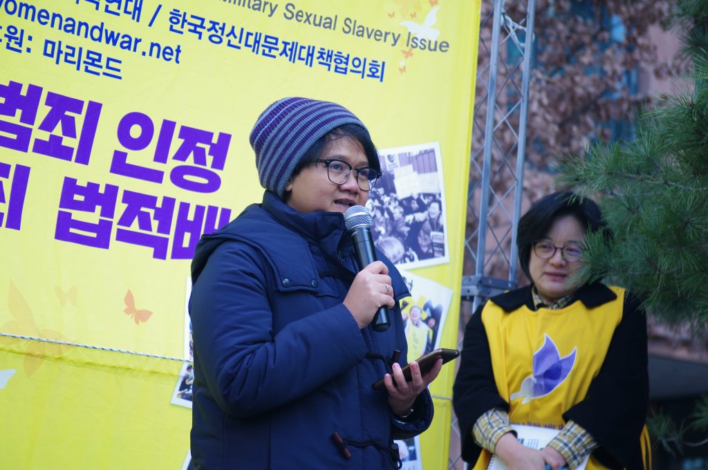 “일본군이 여성들을 성노예로 쓰기 위해 조직적인 납치를 저질렀던 것은 끔찍한 일이라고 생각합니다. 그런 행위는 지금도 잘못됐고, 내일에도 잘못된 일입니다.”