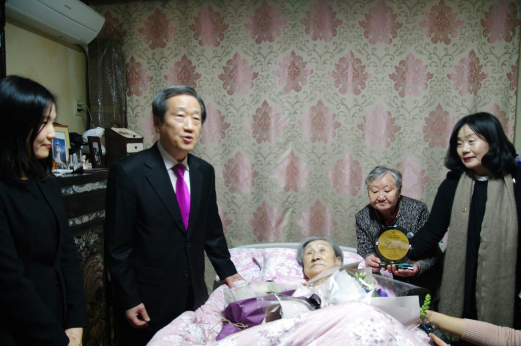 공익사단법인 '정'의 김재홍 이사장님이 평화의 우리집으로 직접 오셔서 시상을 진행하셨습니다. 할머니께서는 건강이 좋지 않으셔서 침상에서 수상하셨습니다. 요즘 할머니께서는 병환으로 힘드셔서 말도 잘 없으셨는데 상을 받으시고는 "이 상금을 재일조선학교 지원하는 일에 써달라"고 하셨습니다.