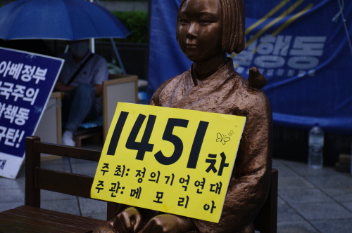 일본군성노예제 문제해결을 위한 1451차 수요시위도 코로나19 예방을 위한 집회 금지 조치에 따라 기자회견으로 진행되었습니다. 오늘의 주관단체는 일본군성노예제 문제해결 동아리 메모리아입니다.