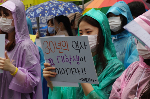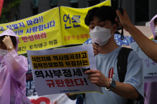 그리고 연대발언이 이어졌습니다. 독일 코리아협의회와 일본에서 연대메시지를 보내주셔서 영상 연대발언을 함께 보고 현장에서는 대학생 시사탐구 동아리 뚜벅 최수진, 여대연합 노래 동아리 늘해랑 나윤경, 서울대학생겨레하나 이민준 학생이 연대발언을 하였고, 박승배 고등학생이 보내준 연대발언 글을 메모리아 박수빈 학생이 대신 읽었습니다.