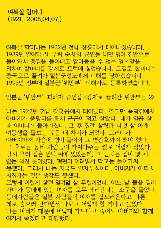 이어 여복실 할머니 삶 소개가 이어졌습니다. 그리고 마지막으로 우리의 입장을 낭독하며 1434차 수요시위는 마무리되었습니다. 오늘도 역시 라이브를 진행해주신 미디어몽구님 고맙습니다.