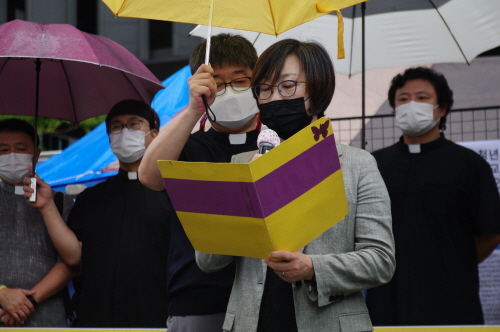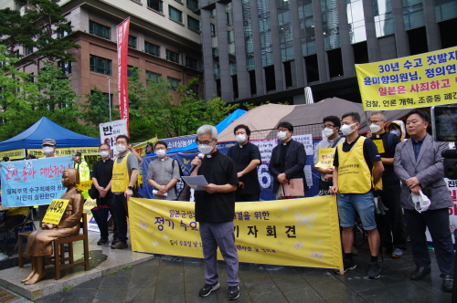 일본군성노예제 문제해결을 위한 1449차 수요시위도 코로나19에 따른 집회 금지에 따라 기자회견으로 진행되었습니다. 이번 주 주관단체는 천주교정의구현전국사제단입니다.