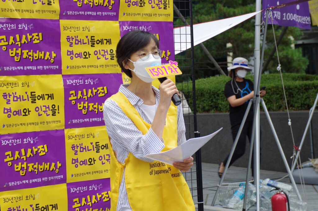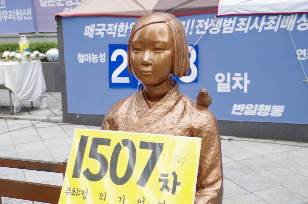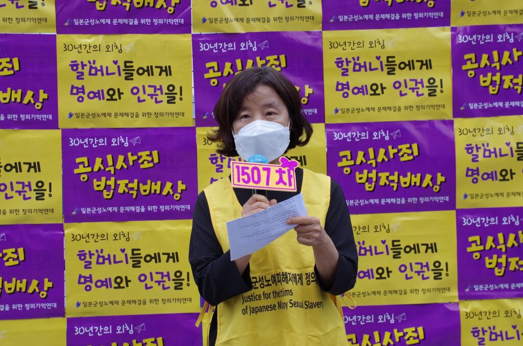 우리는 오늘도 일본의 한반도 침략을 규탄하고 성노예 문제 해결을 촉구하기 위해 이 자리에 모였습니다. 1992년 1월에 시작된 우리의 시위는 이제 1507번째를 맞았습니다.