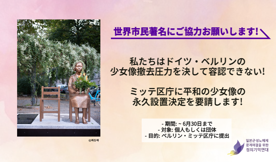 [~6/30] ベルリンの平和の少女像を守るための世界市民著名
