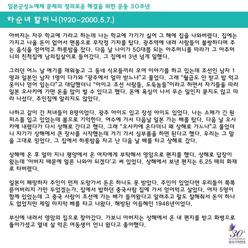 1438차 수요시위에서 소개한 하순녀 할머니의 삶, 함께 보아요!