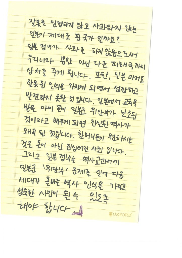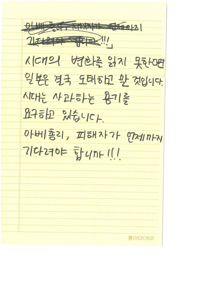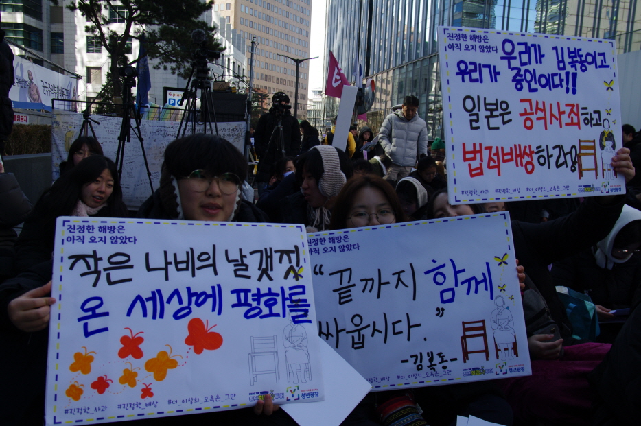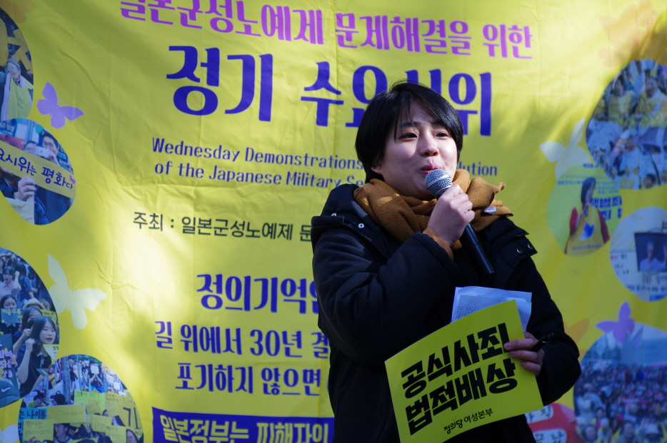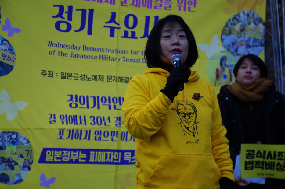 우리는 일본정부에게 가해자를 처벌하라 하고 있는데 우리 안의 폭력은 침묵하면 안 된다. 우리가 안고 있는 폭력들을 해결하지 않으면 진정한 일본군성노예제 피해 해결이 아니다. 우리 사회가 여전히 가부장적이고 성폭력을 만들어낸 사회라면, 가해자로부터 반성을 받아냈지만 우리가 여전히 그런 여성들을 향해 너희 탓이야, 너희 책임이야, 너희는 자발적으로 그런 일을 한 여성이야. (반일종족주의라는 사람들이 수요일마다 이런 이야기를 하고 있다.) 이런 일이 일어나고 있다.