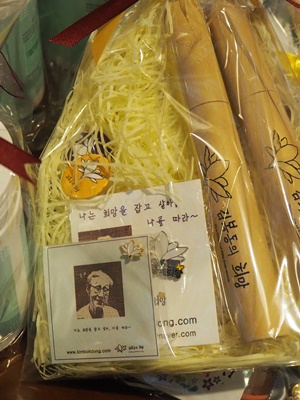 2부행사로는 경품추첨과 길원옥 할머니가 만든 물품, 한성원작가님 작품 등 특별경매가 뜨거운 환호속에 진행되었습니다. 특히 길원옥 할머니가 직접 만드신 압화작품(전등,시계)는 폭발적 인기를 얻었습니다.