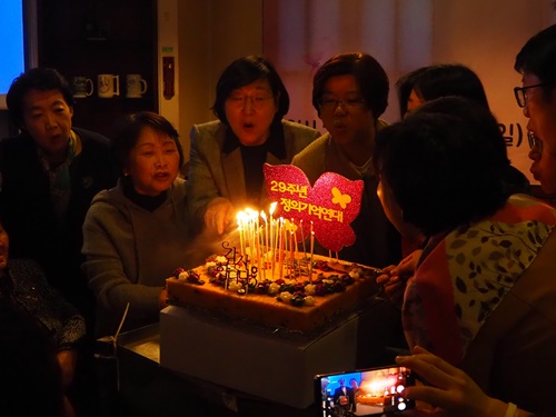 무엇보다도 피해자로 머물러 있지않고, 직접 활동에 뛰어들어 인권운동의 모범을 보여주신 생존자들은 그 누구보다도 우리 운동의 큰 기여자이십니다. 이번 29주년 후원의날 행사에도 힘든 몸임에도 불구하고 함께 참석하여 “감사합니다.” 굵고 짧은 인사말로, 또한 가수답게 축하노래로 함께 해 주신 길원옥 할머니, 참으로 감사드립니다.