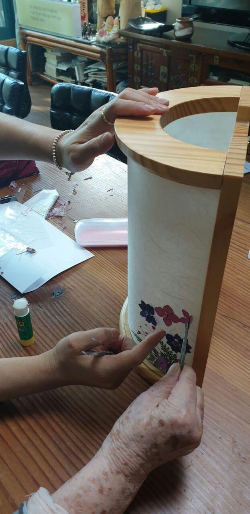 또한 벽걸이 스탠드에는 마른 꽃잎을 붙이는 섬세한 작업으로 작품을 완성하였습니다.