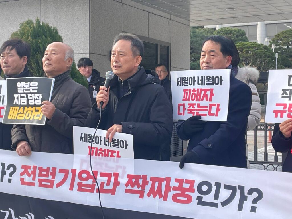 일본 피고 기업들의 파렴치한 행위는 사실 일본 정부에 의해 주도되고 있다. 하지만 한일관계 회복이라는 구실로 가해자의 배상 책임에 면죄부를 주고 있는 윤석열 정부의 대일 저자세는 이 사태의 또 다른 공범이다.