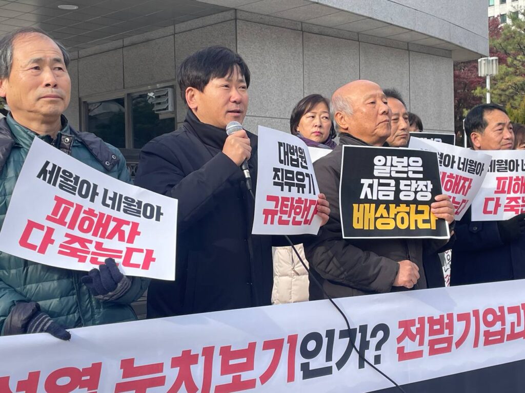 우리는 역사적 사실 앞에 겸허해야 한다. 윤석열 정부의 대일 퍼주기 외교에 사법부가 동조하는 것이 아니라면, 판결을 지체할 이유가 없다. 일본에 사법주권을 내 주는 것이 아니라면, 판결을 더 이상 지체할 이유가 없다.