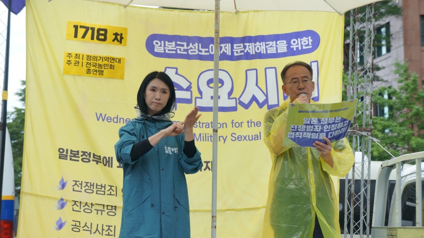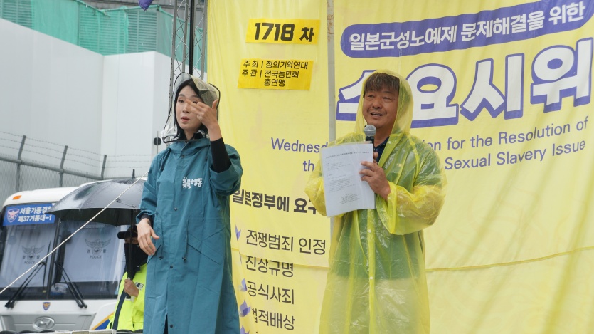 1718차 일본군성노예제 문제해결을 위한 정기 수요시위의 주관은 전국농민회총연맹에서 하였고 사회는 권혁주 사무총장님이 보았습니다. 비가 내리는 날씨에도 많은 분들이 함께해 주셨습니다.