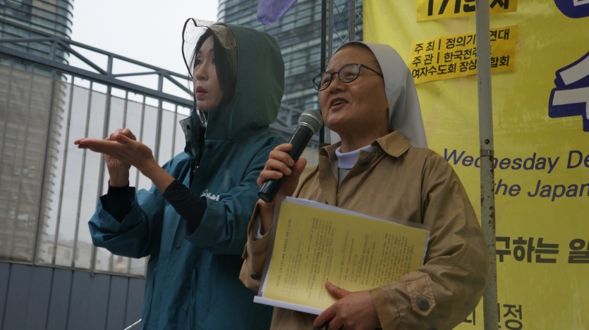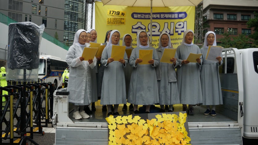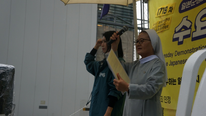 1719차 일본군성노예제 문제해결을 위한 정기 수요시위의 주관은 한국천주교 여자수도회 장상연합회에서 하였고 사회는 말씀의 성모영보수녀회 김봉숙 요세피나 수녀님이 보았습니다.