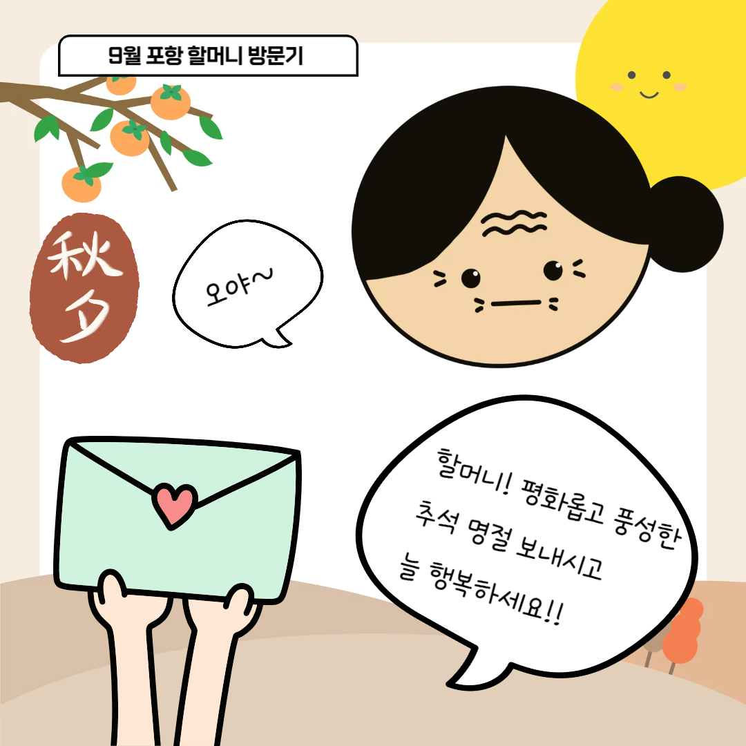 2025년 9월 25일, 정의기억연대 행과 낙영 활동가가 할머니를 뵈러 포항에 다녀왔습니다. 가랑비가 내렸다 그쳤다 하는 흐린 날이었습니다. 오랜만에 뵙는 할머니인데도 어제 뵌 것 마냥 친근했습니다. 막 점심시간이 된 차라 할머니를 모시고 요즘 자주 가신다는 국수집에 갔습니다. 낙영이 지난번 포항에 왔을 때는 무슨~ 국수냐!고 하셨는데, 그새 단골이 되신 듯합니다. 할머니는 식사 내내 활동가들에게 국수를 덜어주시려 했습니다만 활동가들은 한사코 거부하고 할머니의 국수를 지켰답니다.