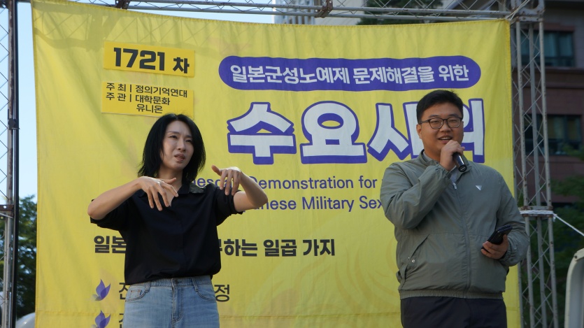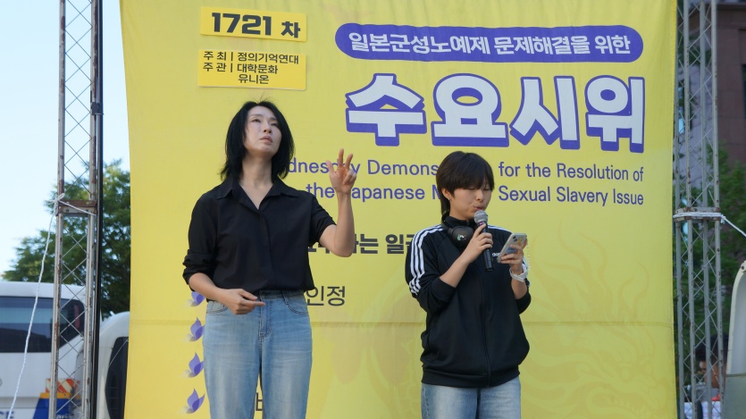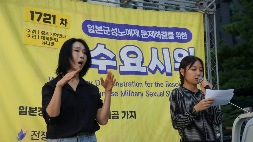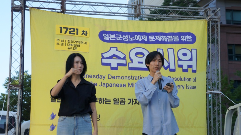 이번 수요 시위가 저의 첫 수요 시위인데요. 이렇게 발언까지 하게 되어서 정말 영광입니다.