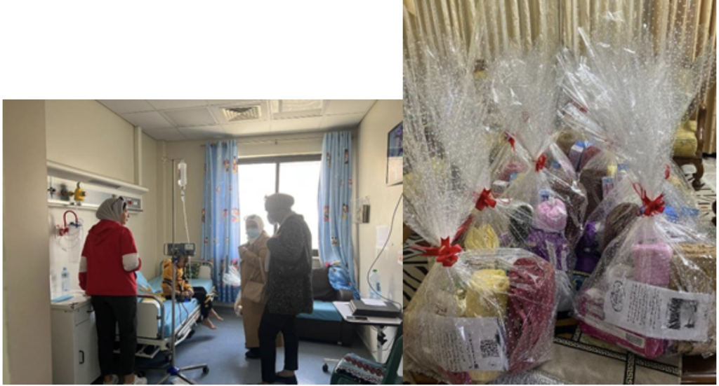 <알-나자 국립대학병원에 방문하여 소아암 환자들을 만난 여성지원센터의 모습과 증정한 선물>