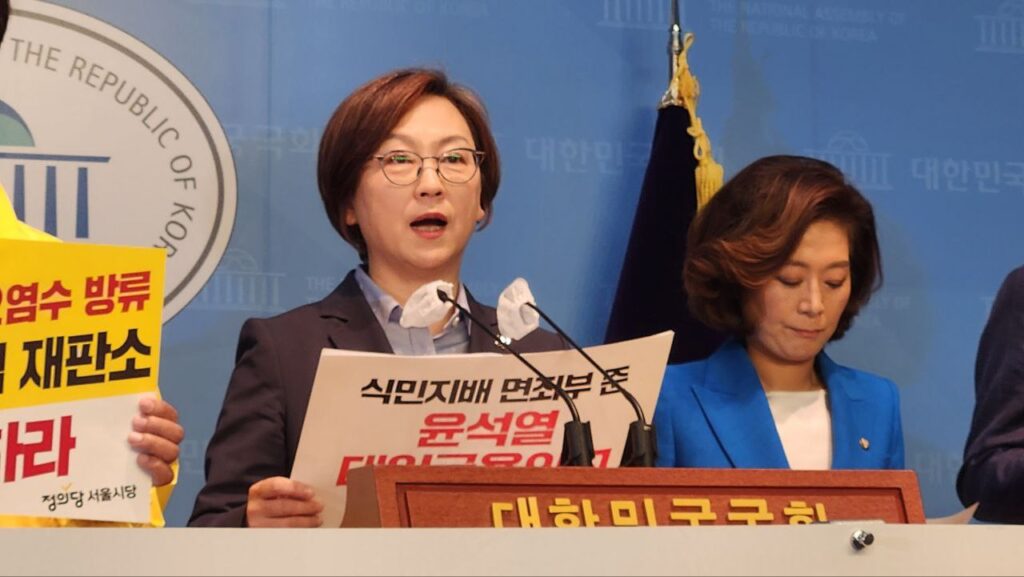 대한민국 국민의 이름으로 강력히 요구한다. 윤석열 대통령과 그 측근들은 일본 우익 정치인들과 동일시를 당장 멈추라. 대한민국의 이익이 아니라 일본 우익의 이익, 일본 여론에 평가받으려 애쓰지 말고, 국민의 호소에 귀 기울이라. 그래서 지금이라도 한반도 불법강점, 강제동원, 일본군성노예제, 민간인 학살에 대한 일본국의 책임을 당당히 묻고 사죄와 법적 배상을 받아내기 위해 최선을 다하라. 분단냉전체제를 극복하고 한반도의 항구적 평화를 위해 온 힘을 다하라. 주권자의 이름으로 명한다.