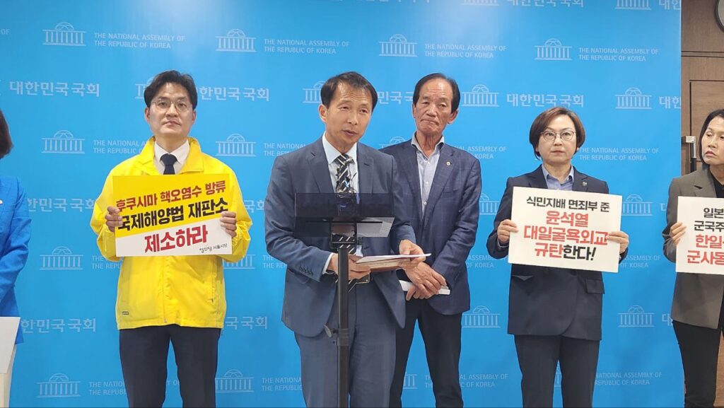 이에 우리 어민과 수산업 종사자들의 시름은 커져만 가고 국민의 걱정은 늘어만 간다. 일본 정부는 후쿠시마 오염수를 과학적이고 안전하게 관리하여 해양방류를 한다고 하지만, 자국 어민과 국민도 믿지 않는 오염수 해양방류를 윤석열 정부는 왜 강력히 막지 않고 있는가. 윤석열 대통령은 일본 정부를 대변할 것이 아니라 해양 생태계와 국민의 생명을 위협하는 후쿠시마 오염수 해양투기 반대 입장을 명확히 하고 일본 정부에 해양투기 중단을 강력히 요청하여야 한다.