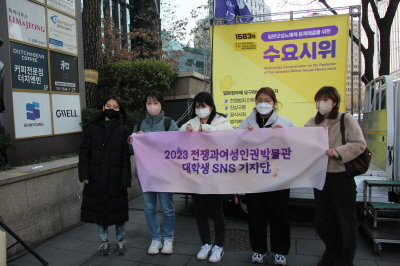 수요시위는 이렇게 국경을 넘어 우리의 생각을 자유롭게 말하고 모두가 존중받는 평등한 공간이자 역사 교육의 현장입니다. 그리고 우리는 일본군 ‘위안부’ 문제와 관련하여 법적배상과 공식사죄를 받아 이 문제를 해결하겠다는 목표와 그 가치에 따라 이곳에 모였습니다. 아무리 혐오세력들과 언론들이 우리의 운동을 부정하고 그 가치를 훼손하고자 하더라도 우리는 이곳에 모여 서로를 믿고 운동을 함께 지켜냈습니다. 저도 평화나비에서 활동하며 일본군 ‘위안부’ 문제를 해결과 반전을 외치는 평화로운 세상을 위해 어떠한 공격이 오더라도 서로를 믿으며 활동하려고 합니다.