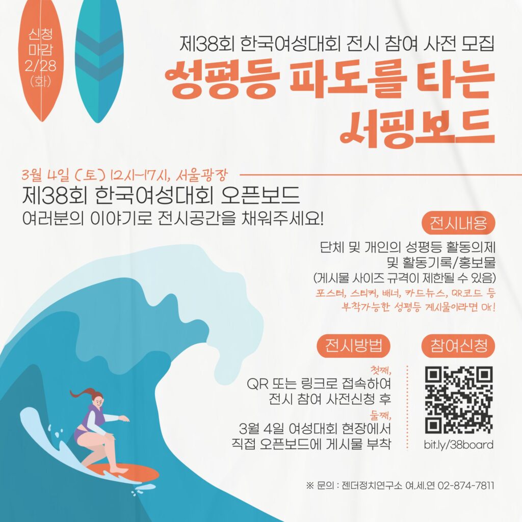 정의기억연대는 세계여성의 날 기념 제38회 3.8 한국여성대회 조직위원회로 참여하고 있습니다. 제38회 여성대회는 광장에서의 문화 행사와 다양한 시민들이 참여할 수 있는 부스 프로그램, 서울 시내 곳곳의 거리 행진 등을 예정하고 있습니다. ‘올해의 여성운동상’과 ‘성평등 디딤돌’ 선정을 통해 2022년 주요 여성 이슈를 돌아보며 참가자들의 연대의 힘을 모을 예정입니다.