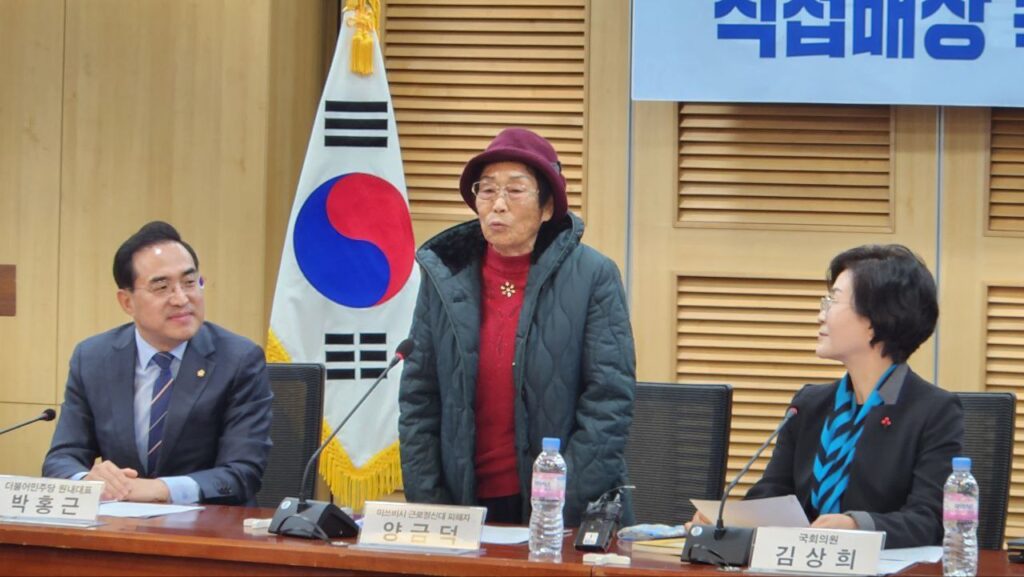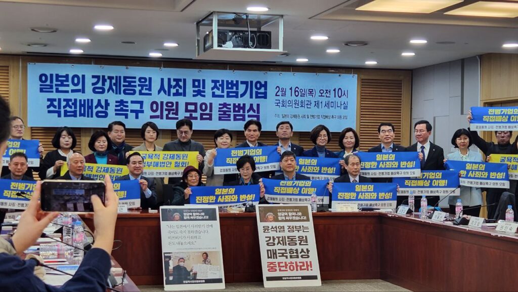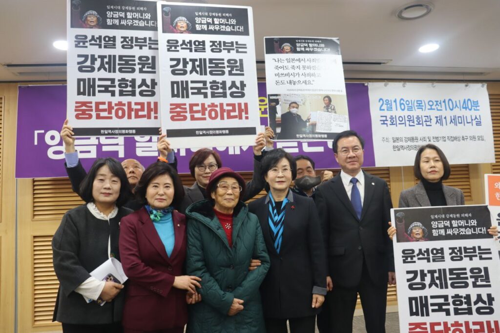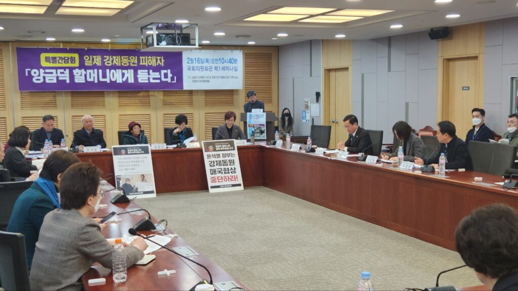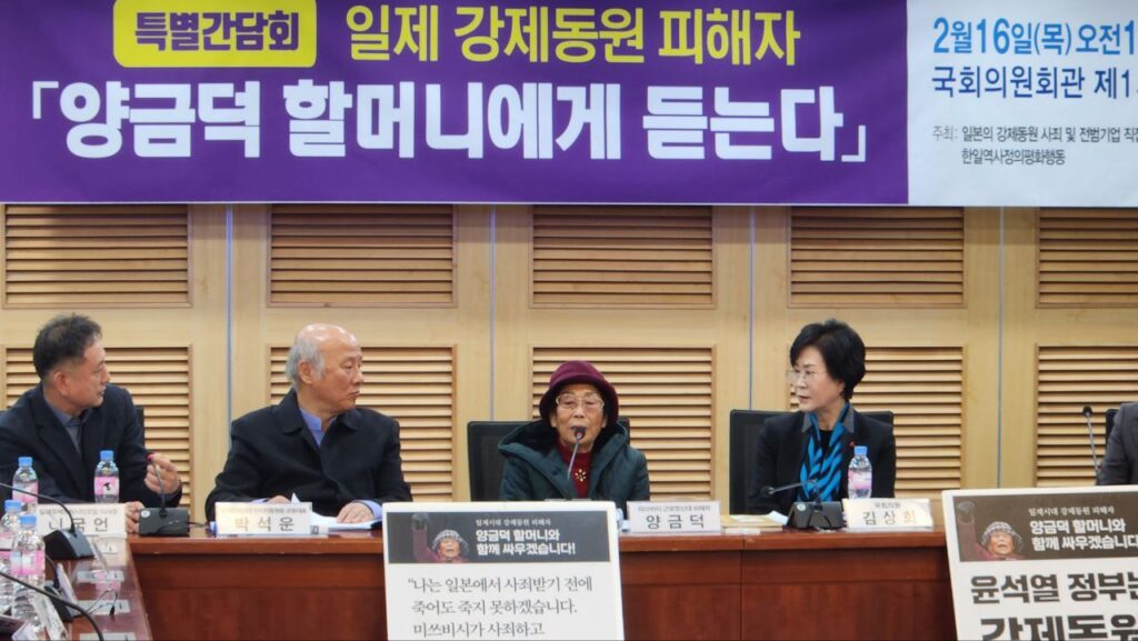 2월 16일은 더불어민주당 김상희 의원을 대표로 51명의 국회의원들이 모여 <일본의 강제동원 사죄 및 전범기업 직접 배상 촉구 의원 모임>을 발족했습니다. 이 의원모임과 한일역사정의평화행동이 주최하여 일제 강제동원 피해자인 양금덕 할머니의 말씀을 직접 듣는 특별간담회를 개최했습니다.