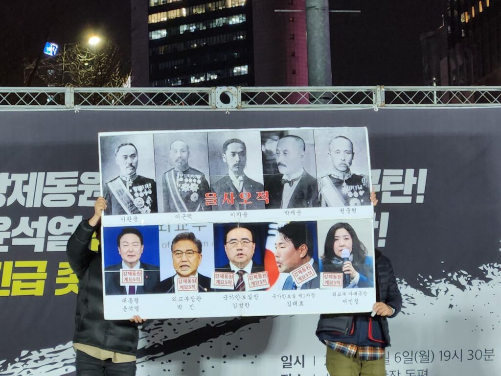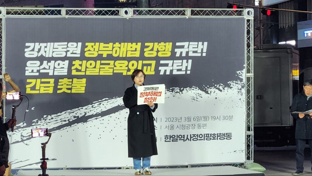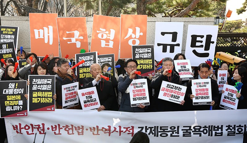 “반인권∙반헌법∙반역사적 강제동원 굴욕해법 강행 규탄한다!”