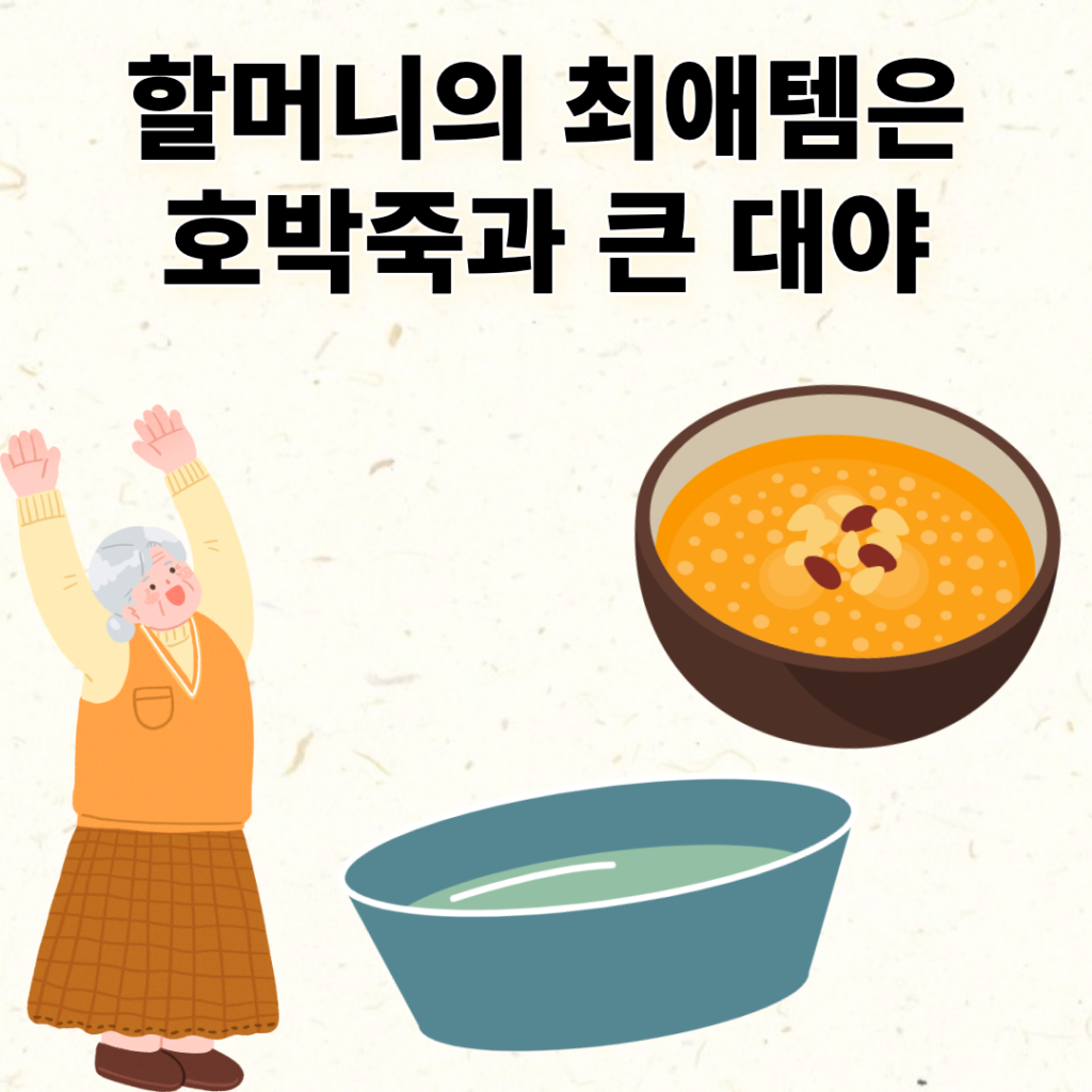 요즘 할머니께서 입맛이 없는 것 같아 저희는 시장에서 미역국, 단호박죽, 그리고 여러 반찬을 샀습니다. 역시 미역국, 단호박죽을 큰 팩으로 3개를 사고 나니 아주 많이 무거웠는데, 할머니께서 맛있게 드실 생각에 ‘새지만 마라’ 하고 이고 지고 걸음을 재촉했습니다.