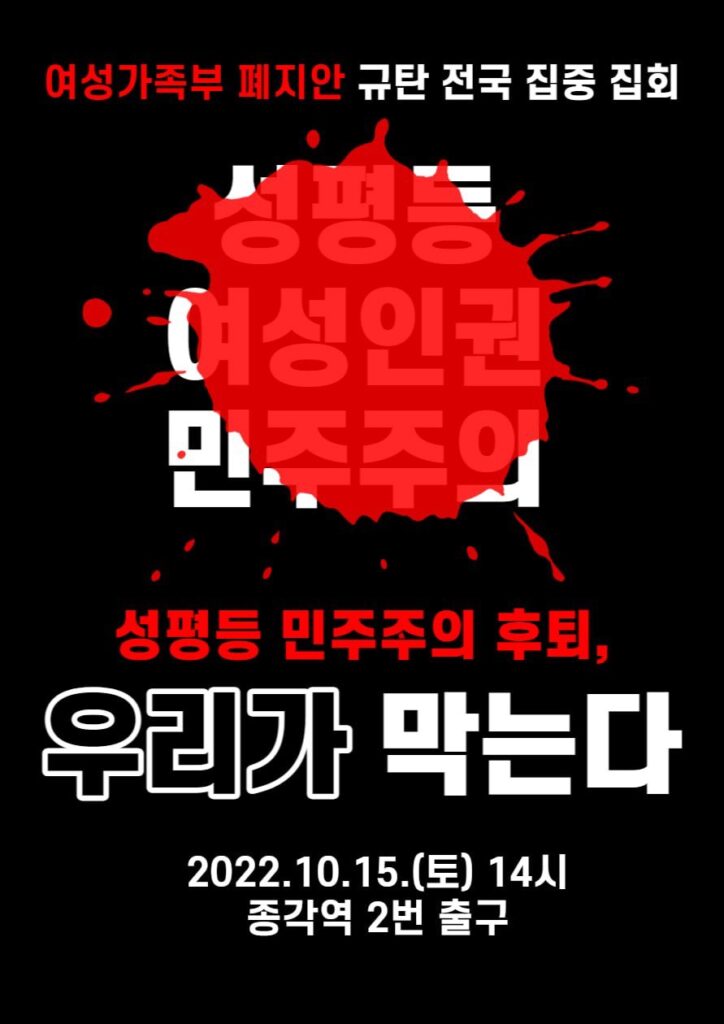 대선 시기부터 구조적 성차별을 부정하고 성별 갈라치기와 여성가족부 두들겨 패기로 여성혐오, 반인권, 반민주, 반민족, 반평화 세력을 규합했던 윤석열 정부와 국민의힘이 여성가족부폐지를 공식화했다. 외교무대에서 국격을 실추시키고 국민의 일상이 어려울 정도의 망언과 망동을 자행하다 지지율이 하락하자 국면전환용으로 내민 카드다, 심지어 보건복지부로 통합되면, ‘여성보호 기능 강화,’ ‘거시적·종합적 시각에서 성주류화 정책 수립·시행’이 가능하다 강변한다. 황당무계, 어이상실, 앙천대소(仰天大笑)할 일이다. 독립 부처를 폐지하고 격하시켜 다른 부처 산하에 두는 것이 기능 강화인가. 연속선과 연결성을 지녀야 할 정책을 사업별로 쪼개고 나누어, 별개 부처로 흡수하는 것이 기능 강화인가. 여성을 남성 보호의 대상, 가족 안에 속박된 존재, 필요에 따라 소환하거나 버려도 되는 물건 취급하는 시대착오적 발상으로 성평등 강화가 어떻게 가능한가.대한민국 여성은 여전히 취업차별, 승진차별, 유리벽, 유리천장, 경력단절, 독박육아, 성희롱, 성폭력, 스토킹, 성적 대상화, 디지털 성폭력, 성착취, 살해 위협에 시달리고 있다. 성별소득 격차 31.5%로 OECD 평균(13.5%)의 두 배를 넘고, 여성의 노동 참여율 59%(남성 79%), 여성 중간관리자 비율 15.6%, 여성국회의원 비율도 1/5 미만이다. 매년 ‘세계여성의날’에 발표되는 유리천장지수에서 10년 연속 OECD 국가 꼴찌의 불명예를 안고 있으며, 세계경제포럼(WEF)이 발표하는 성격차지수(GGI)에서도 2022년 대한민국은 조사대상 146개국 99위다. 현재 추세대로라면 동아시아와 태평양 지역은 성평등 달성에 168년이 걸릴 것이라 한다. 너무도 갈 길이 먼 상황에서 정치권은 누적된 성차별과 엄연히 현존하는 안전 문제를 제대로 인식하고 해결하기는커녕 갈등을 부추기고 혐오를 확산하며 정쟁만 벌이다 결국 여성가족부 폐지 카드를 들고 나왔다. 여성을 온전한 인격체를 지닌 동등한 인간이 아니라 출산하는 몸, 노동하는 몸, 성폭력 당하는 몸, 개별 사업의 기능적 도구로 갈가리 찢어발기면서 궤변만 늘어놓고 있다. 일본군‘위안부’ 피해자 지원 및 기림 사업은 어떻게 할 작정인가. 일본 정부가 요구하고 한국 외교부가 맞장구치고 있는 ‘2015 한일합의 정신 준수’와 화해치유재단 부활을 위한 술수인가.우리는 똑똑히 안다. 권력기관의 사병화와 정치의 사법화를 획책하며, 경제위기, 민생파탄을 자초한 이들. 식민사관과 가해자 논리로 역사적 진실을 외면하고 견강부회, 사회적 분열에 앞장 서온 극단적 우익 인사들, 혐오팔이로 밥벌이하는 유튜버와 태극기 부대, 길거리 우파들을 정권에 전진 배치한 자들. 입으로는 자유와 민주주의 운운하며 성소수자와 장애인을 핍박하는 자들. 이들이 바로 걷잡을 수 없이 확산되는 시민들의 분노와 비애, 절망과 냉소주의의 근원이자 여가부 폐지 추진을 통해 정치적 이익을 꾀하는 자들 아닌가. 대통령 인수위 시기부터 활동해 온 <여가부폐지 저지를 위한 공동행동>은 윤석열 정부와 국민의힘에 강력히 경고한다. 여성 없는 국가 없고 성평등 없는 민주주의 없다. 윤석열 정부와 국민의힘은 퇴행적 무지와 무능으로 국제사회 웃음거리 되지 말고, 성평등과 인권이라는 세계사적 흐름에 지금이라도 적극 동참하라. 여가부 폐지 추진 당장 철회하고 체계적이고 조직적인 여성인권정책 실행을 위해 독립적 성평등 기구 강화하라. 만약 여성들의 목소리를 계속 외면하고 무시한다면 이에 따른 가혹한 대가는 오롯이 당신들의 몫이 될 것이다.