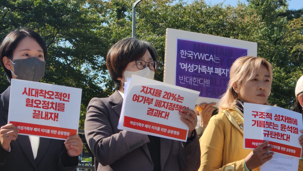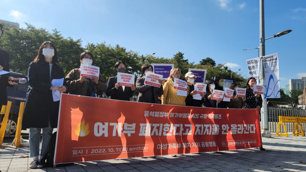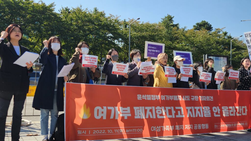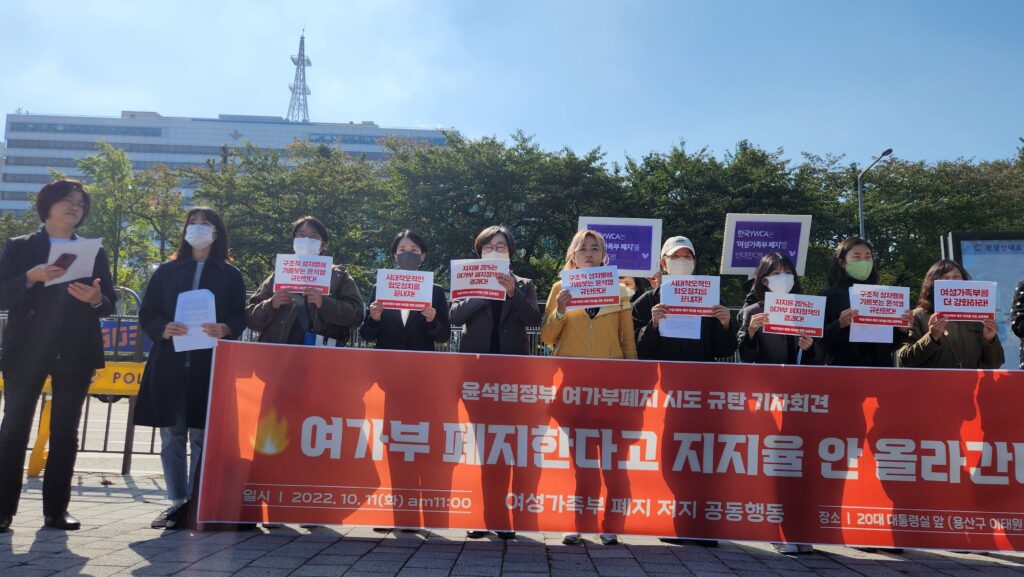 제 20대 대통령 선거 때부터 여성가족부 폐지를 공약으로 내세워 성별갈등과 여성혐오를 이용하여 당선된 윤석열 대통령은 여전히 여가부의 폐지를 인질삼고 있다. 한국 사회에 아직까지 성평등이 도래하지 않았음에도 불구하고 여가부를 폐지하려는 것은 단순히 정부 부처를 폐지하는 것을 넘어서 ‘여성’이라는 명칭을 가진 부서를 해체함으로써 여성의 주체성을 박탈하려는 시도로 보인다.