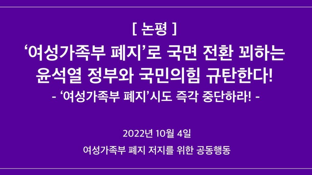 ‘여성가족부 폐지’로 국면 전환 꾀하는 윤석열 정부와 국민의힘 규탄한다!