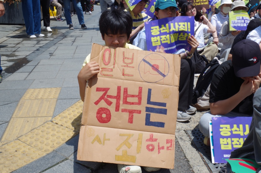 一、日本政府は、歴史を歪曲せず、日本軍性奴隷制の被害者に対し、適切な謝罪と賠償を実施せよ。