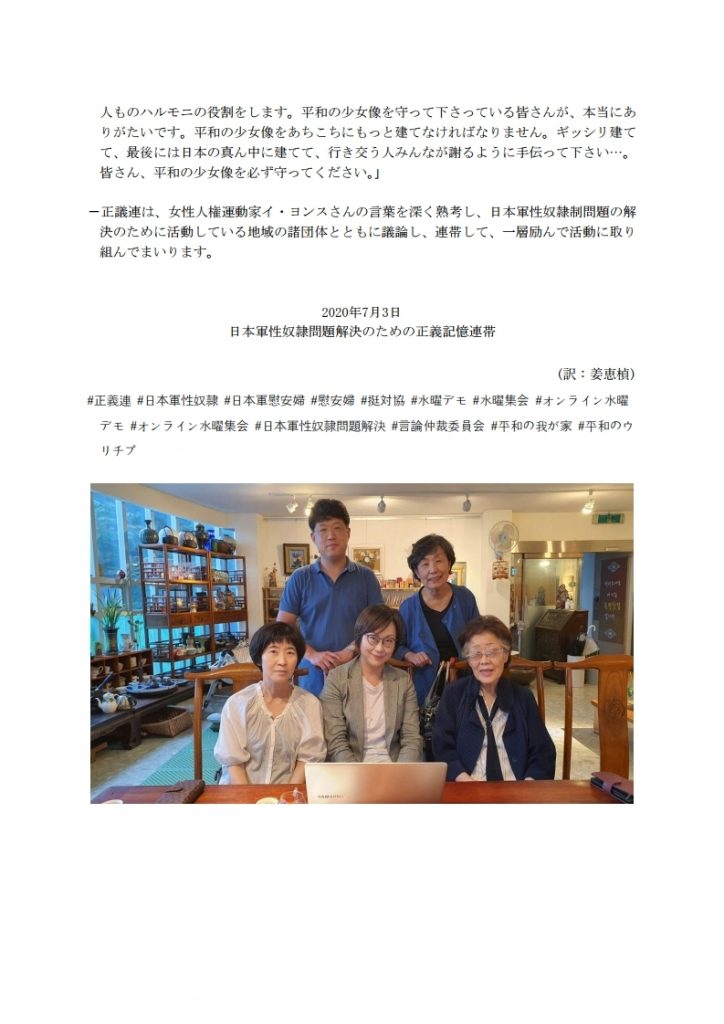 [第1446回日本軍性奴隷制問題解決のための定期水曜集会・週間報告]