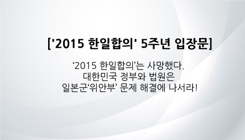 ‘2015 한일합의’는 사망했다. 대한민국 정부와 법원은 일본군‘위안부’ 문제 해결에 나서라! I. 2015년 12월 28일, 한일 외교장관 기자회견을 통해 이른바 ‘2015 한일합의’가 발표된 지 만 5년이 되었다. ‘2015 한일합의’에서 아베 신조 정부는 구체적인 사실 인정과 역사교육에 대한 다짐이 빠져 있는 ‘책임 통감’, 법적 배상금이 아닌 ‘위로금’ 10억 엔으로 피해자들의 입을 봉하려 하였다. 1993년 「고노 담화」보다 퇴행한 것이었고, 1995년 ‘여성을 위한 아시아평화 국민기금’의 재판이었다. 그럼에도 박근혜 정부는 ‘최종적・불가역적 해결’에 동의해주고 서울의 일본대사관 앞 ‘평화의 소녀상’에 대한 일본 정부의 우려를 해결하기 위해 노력하겠다는 약속까지 해주었다. II. 5년이 지난 지금 어떻게 되었는가! ‘2015 한일합의’는 일본군‘위안부’ 문제를 해결하기는커녕 문제 자체를 지우려는 사악한 기도에 빌미만 제공하고 있다. 일본 정부는 ‘2015 한일합의’로 한국 정부의 입에 재갈을 물렸다고 치부하고, 전 세계에 설치된 ‘평화의 소녀상’ 철거를 위한 조직적 행동을 감행하며 일본군‘위안부’ 문제 자체를 지워버리려 기도하고 있다. 지난 9월 25일에 베를린 시민들이 세운 ‘평화의 소녀상’에 대해 10월 7일에 베를린 미테구가 철거 명령을 내린 것은, 일본의 정부・의회・자치단체가 총동원되어 독일의 정부・의회・자치단체를 전방위적으로 압박한 결과에 다름 아니다. 베를린 시민들의 활동에 대해 한일 정부 간 합의를 들이민 것 자체가 애당초 번지수가 틀린 일이지만, 대국임을 자처하는 나라의 정부・의회・자치단체가 벌떼 같이 몰려가 일본군성노예라는 반인도적 범죄의 피해자와 ‘여성인권과 평화’라는 국제사회의 가치를 상징하는 평화의 소녀상을 공격하는 모습은 그저 한심할 따름이다. 베를린 시민들이 ‘평화의 소녀상’을 지키기 위해 떨쳐 일어선 것도, 미테구가 철거를 보류한 것도, 미테구 의회가 영구 설치 논의 결의안을 채택한 것도 바로 그 때문이다. ‘베를린 평화의 소녀상’에 대한 일본의 저열한 공격에도 ‘2015 한일합의’가 동원되었다. ‘베를린 평화의 소녀상’ 사태야말로 ‘2015 합의’가 이미 사망했다는 증거 아닌가. 최종적・불가역적 해결의 대전제가 일본 정부의 ‘책임 통감’이었는데, ‘평화의 소녀상’ 공격은 책임 통감과는 거리가 멀다. 대전제가 무너졌으니 ‘2015 한일합의’는 더 이상 설 자리가 없게 되었다. III. 그럼에도 문재인 정부는 2018년 1월 9일에 외교부 장관이 밝힌 「한일 위안부 합의 처리 방향」에서 한 걸음도 움직이려 하지 않고 있다. “2015년 합의는 일본군 위안부 피해자 문제의 진정한 해결이 될 수 없”지만, “일본이 스스로 국제보편 기준에 따라 진실을 있는 그대로 인정하고 피해자들의 명예・존엄 회복과 마음의 상처 치유를 위한 노력을 계속해 줄 것을 기대”하며 “일본 정부에 대해 재협상은 요구하지 않을 것”이라고 한 그 방향이다. 이미 입증되지 않았는가! 아베 정부를 이어받은 스가 요시히데 정부도 “스스로 국제보편 기준에 따라 진실을 있는 그대로 인정하고 피해자들의 명예・존엄 회복과 마음의 상처 치유를 위한 노력”을 하기는커녕 ‘평화의 소녀상’을 철거시키겠다고, 일본군‘위안부’ 문제를 말끔히 지워버리겠다고 혈안이 되어 있다. 대한민국 정부는 “진정한 문제 해결”을 위해 당장 나서라! IV. 일본 정부는 퇴행의 폭주를 감행하고 있고, 한국 정부는 주저에 주저를 거듭하고 있는 지금, 2021년 1월 8일과 1월 13일로 예정된 한국 법원의 판결이 특별히 주목된다. 일본군‘위안부’ 피해자들과 유족들이 일본국을 상대로 제기한 두 건의 손해배상 소송에 대한 서울중앙지방법원의 판결들이 그것이다. 한국인 일본군‘위안부’ 피해자들이 1991년부터 1993년까지 일본국을 상대로 제기한 네 건의 소송에 대해 일본의 법원은 원고 패소 판결을 선고했다. 2000년에 한국・중국・대만・필리핀 출신 일본군‘위안부’ 피해자 15명이 일본국을 상대로 제기한 소송에 대해 미국의 법원도 마찬가지로 원고들의 청구를 배척했다. 그래서 한국인 피해자들에게 남은 것은 오로지 ‘모국의 법정’ 뿐이다. 일본군‘위안부’ 문제에 대한 대한민국의 입장은 분명하다. 정부는 2005년 ‘한일회담 문서공개 후속대책 관련 민관공동위원회’의 결정을 통해 ‘일본군‘위안부’ 문제 등 반인도적 불법행위에 대해서는 일본 정부의 책임이 남아 있’다라고 선언했다. 대법원은 2018년 강제동원 판결을 통해 그 선언을 다시 한 번 확인했다. 일본군‘위안부’ 피해자들이 제기한 소송들을 거부하며 일본 정부가 내세운 ‘국가면제의 원칙’은 중대한 인권침해에 대해서는 적용될 수 없다는 것이 현대 국제법의 흐름이라는 점도 서울중앙지방법원의 법정에서 거듭 입증되었다. 이제 대한민국의 법원이 ‘일본국이 책임을 져야 한다’라고 확인해야 한다. 지난 30년여 간 수많은 국제기구의 보고서와 ‘2000년 일본군성노예 전범 여성국제법정’의 판결과 각국 의회의 결의를 통해 확인된 국제사회의 바로 그 법적 