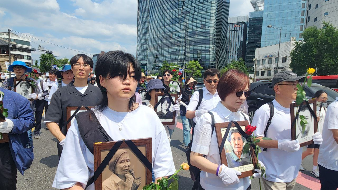 The Korean Council carried the portraits of Kim Hak-soon and Kang Deok-kyung close to their hearts during the memorial march and respectfully placed the photographs at the altar.