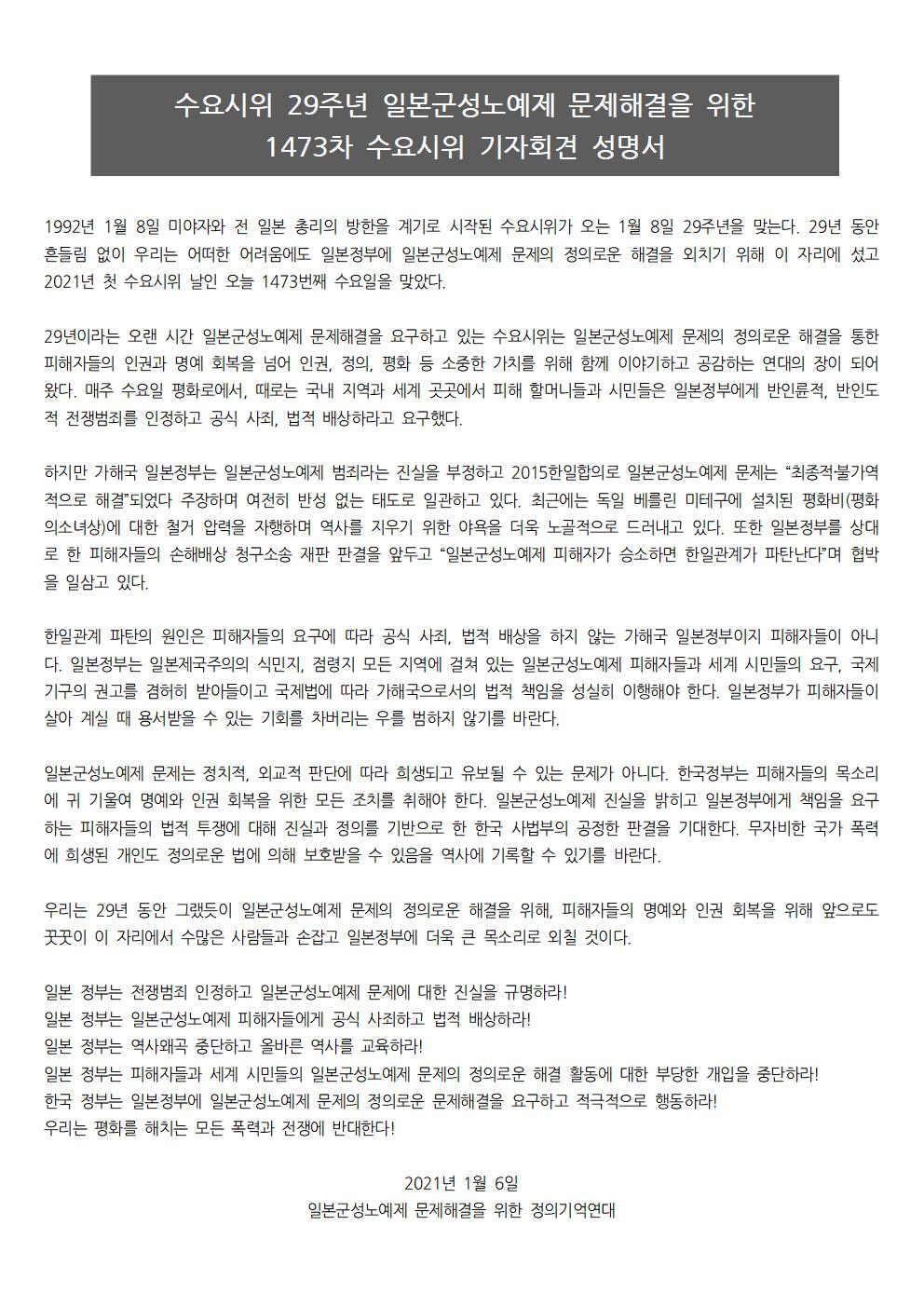[수요시위 성명서] 1473차