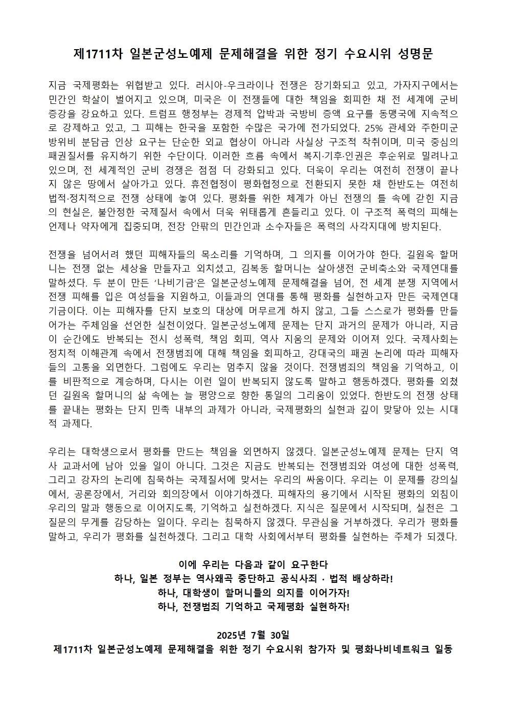 [수요시위 성명서] 1711차