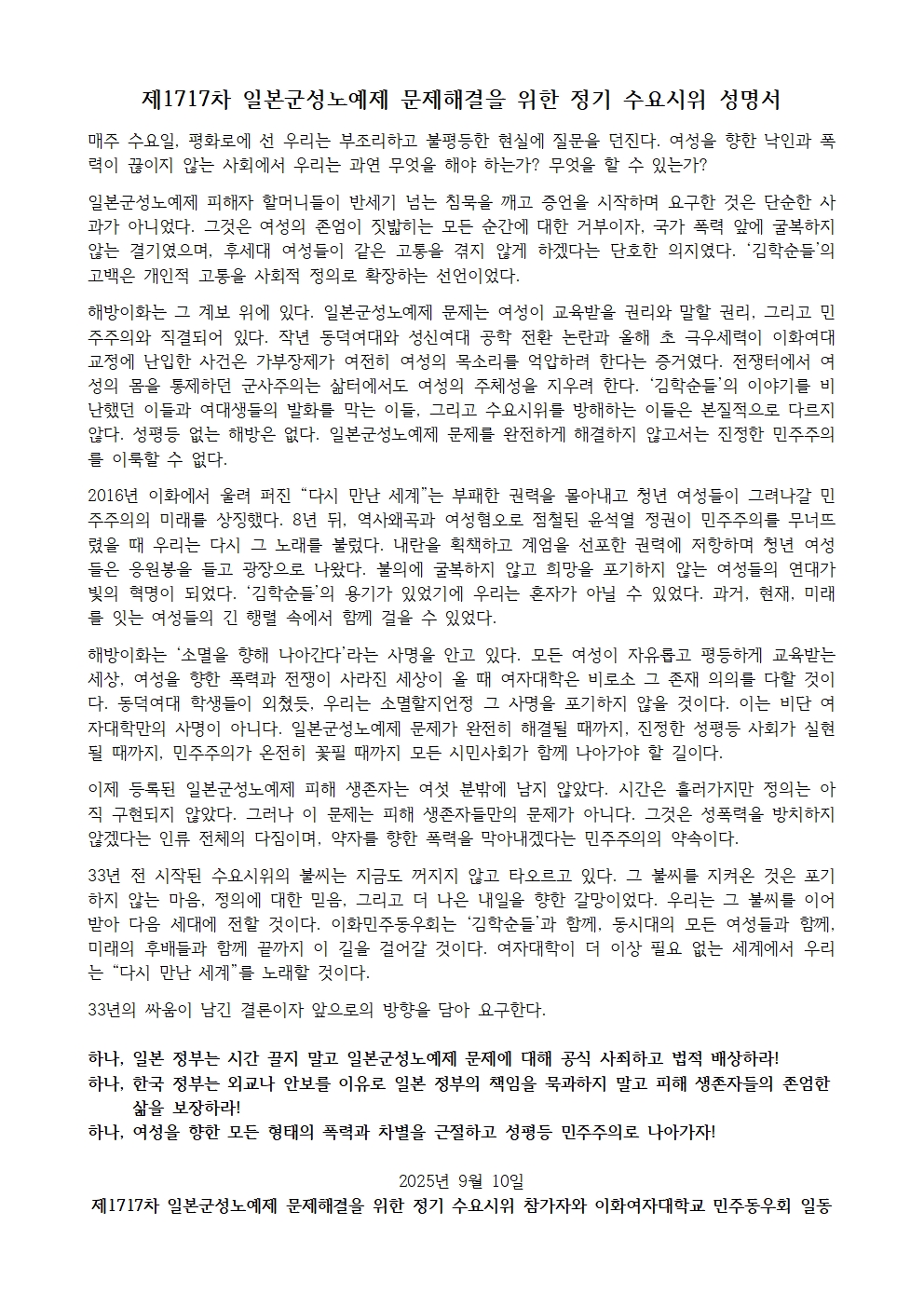 [수요시위 성명서] 1717차