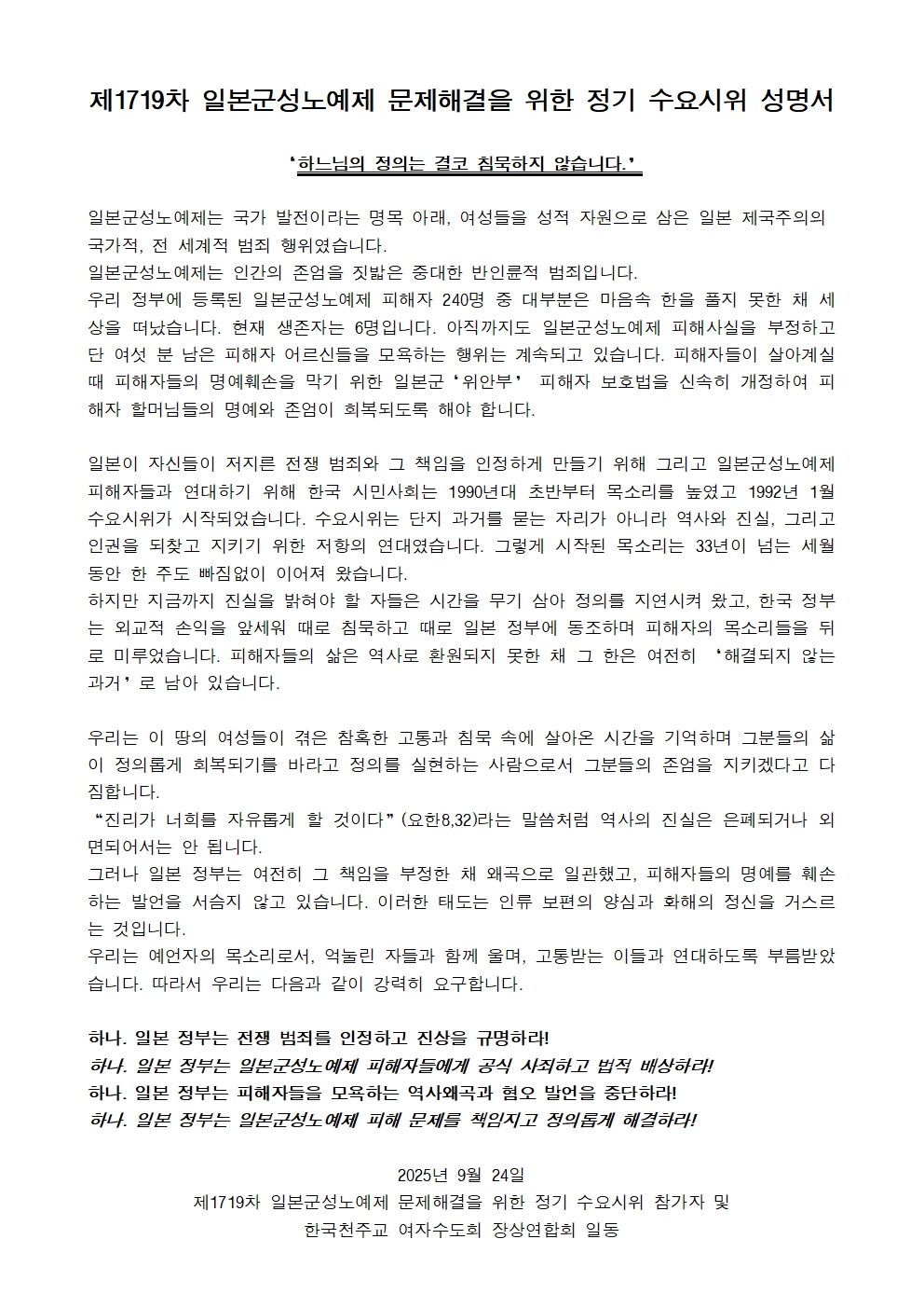 [수요시위 성명서] 1719차